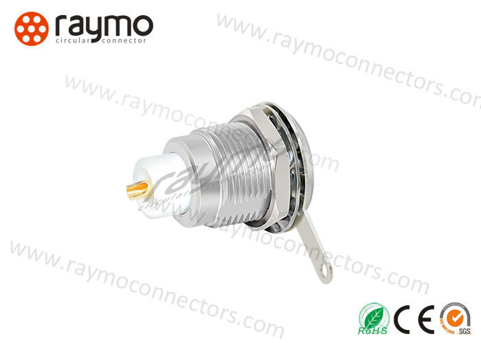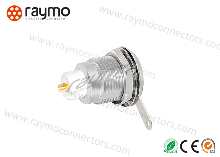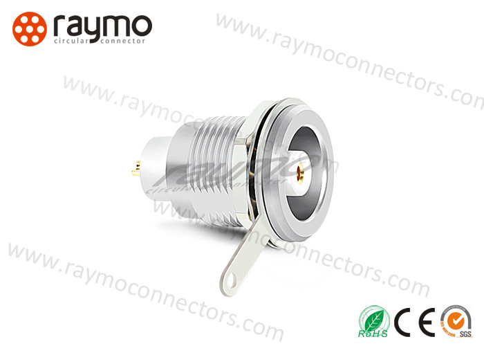 ซ็อกเก็ตแบบคงที่, การยึดด้วยน็อต, 00S series, ประเภทหลายขั้วพร้อมหน้าสัมผัสโคแอกเซียล 50ohm, เปลือกด้านนอกทำจากทองเหลืองชุบโครเมียม, ฉนวน PPS |
