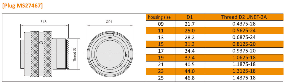 คําอธิบายสําหรับมาตรฐาน Amphenol MIL-DTL-38999 ซีรีส์ IJY27467 ทหารเครื่องเชื่อมวงกลม